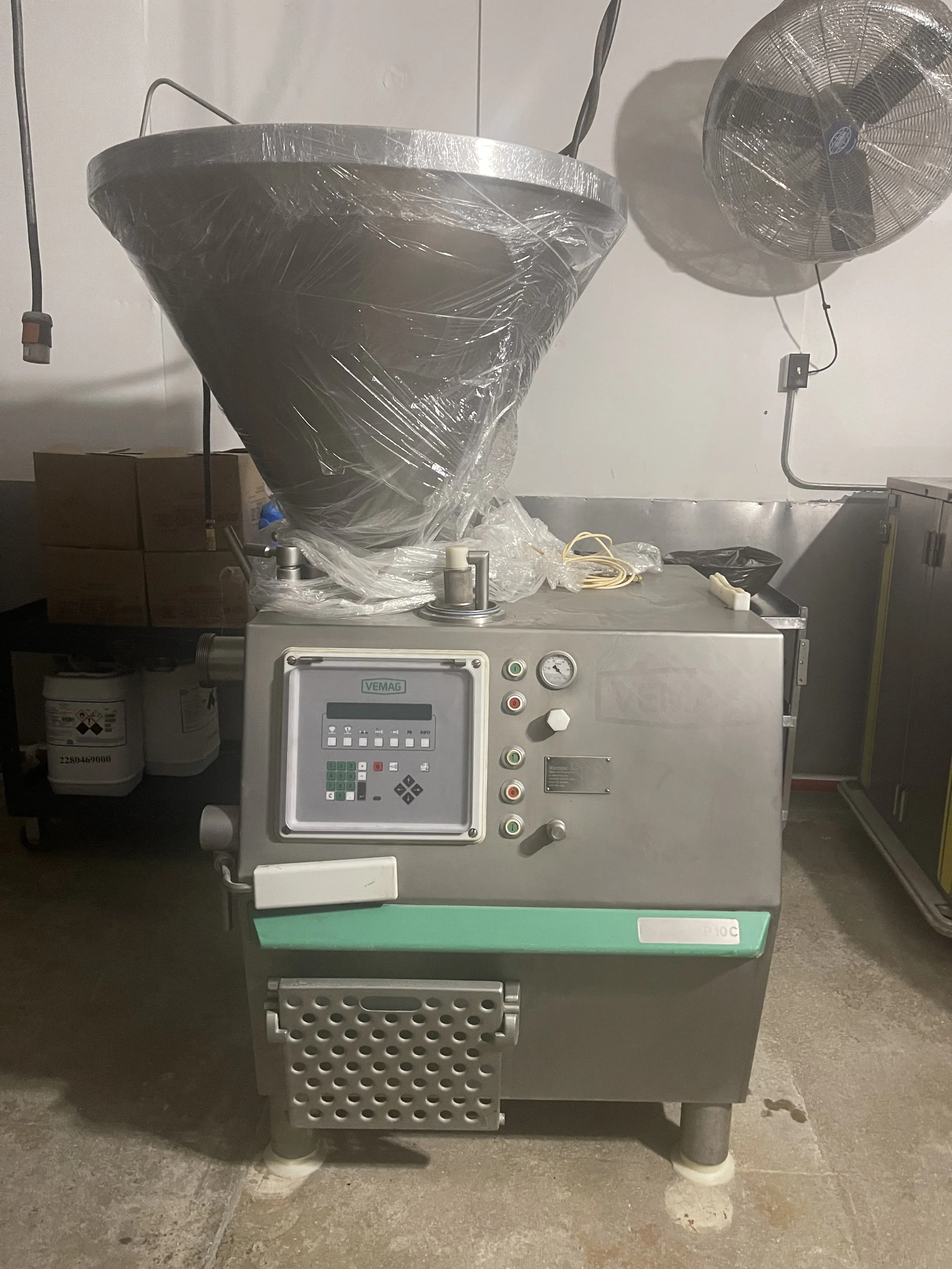 This asset is a VEMAG Robot HP10C vacuum filler system configured as a production-scale filling and portioning unit. It is installed on the production floor and serves as a key upstream processing component within AKDI operations.