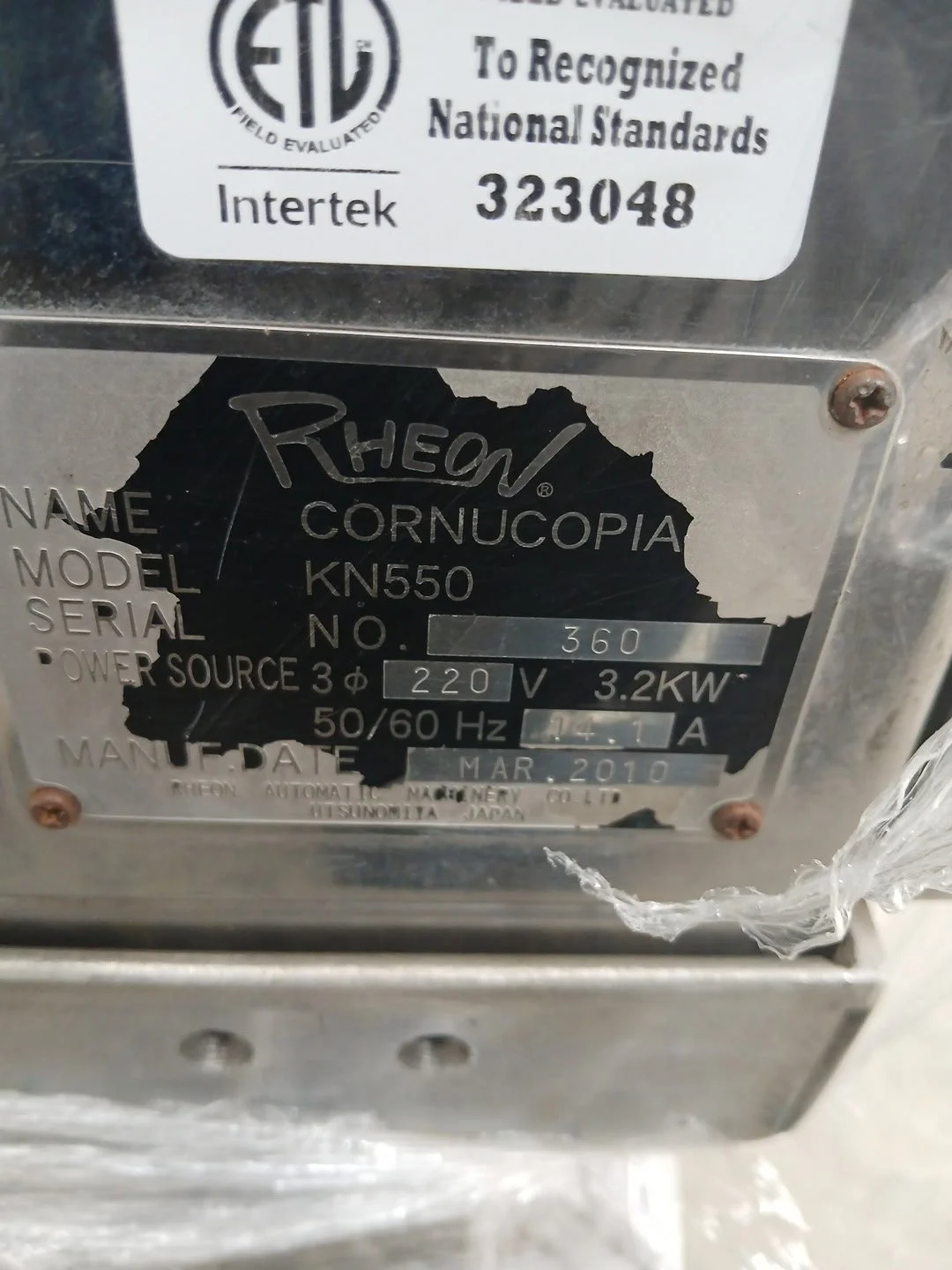 Manufacturer: Rheon Automatic Machinery Co., Ltd.