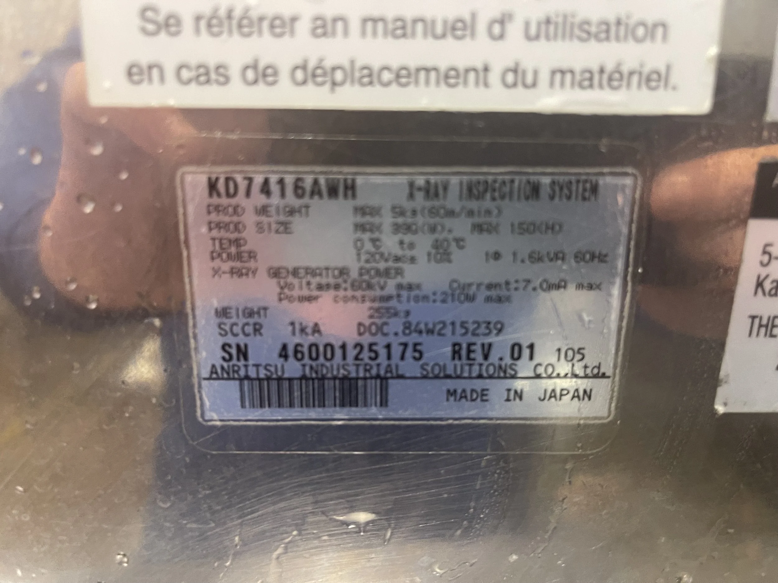 ANRITSU X-RAY INSPECTION SYSTEM – KD7416AWH
