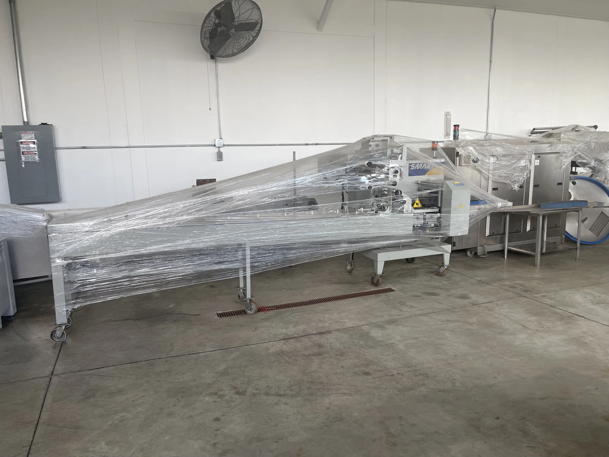 Unit confirmed operational and maintained in standby condition. Equipment is currently wrapped and staged for future use. No known functional deficiencies observed at time of documentation. Configuration appears complete with integrated conveyor and sealing components.
