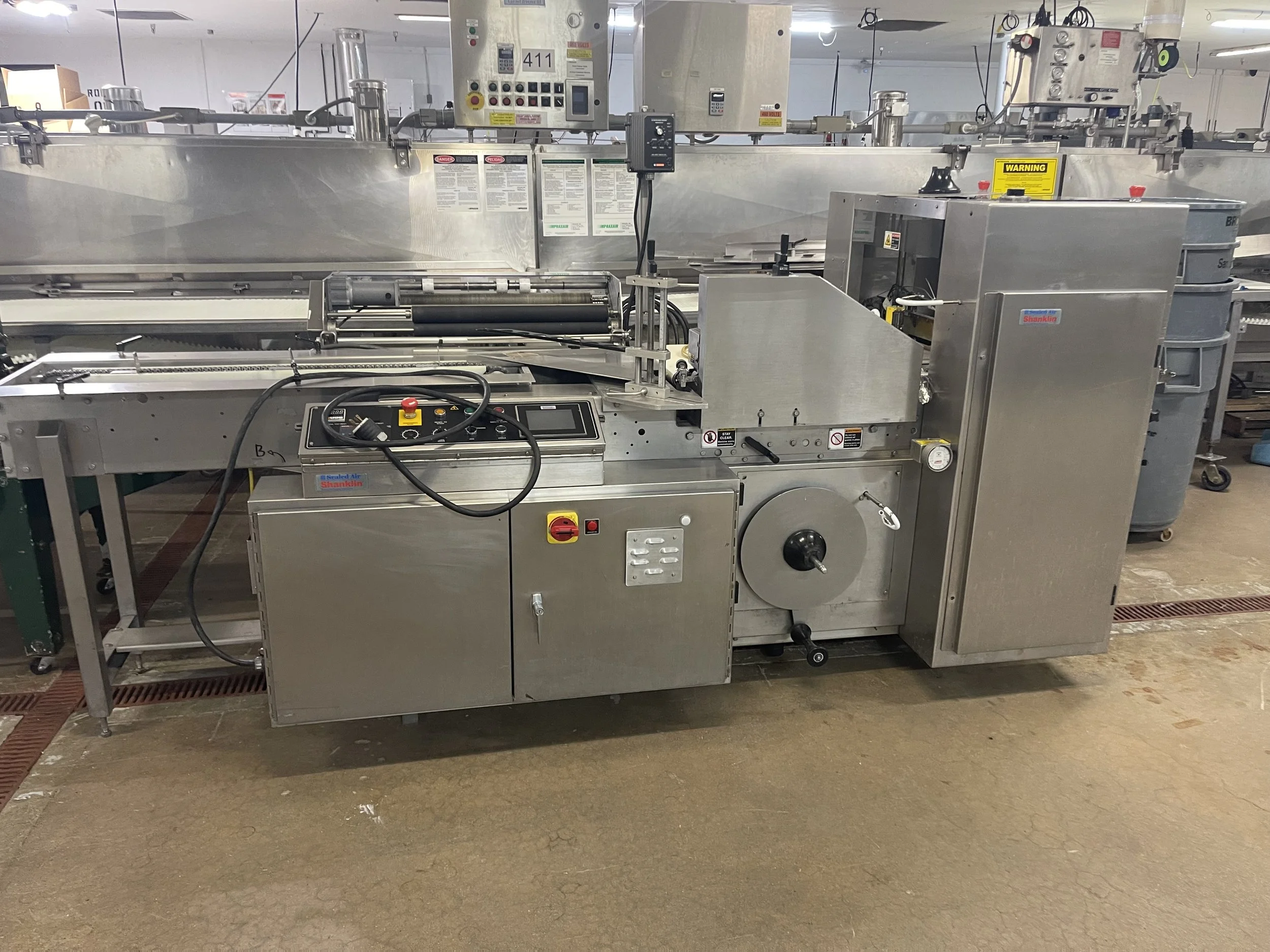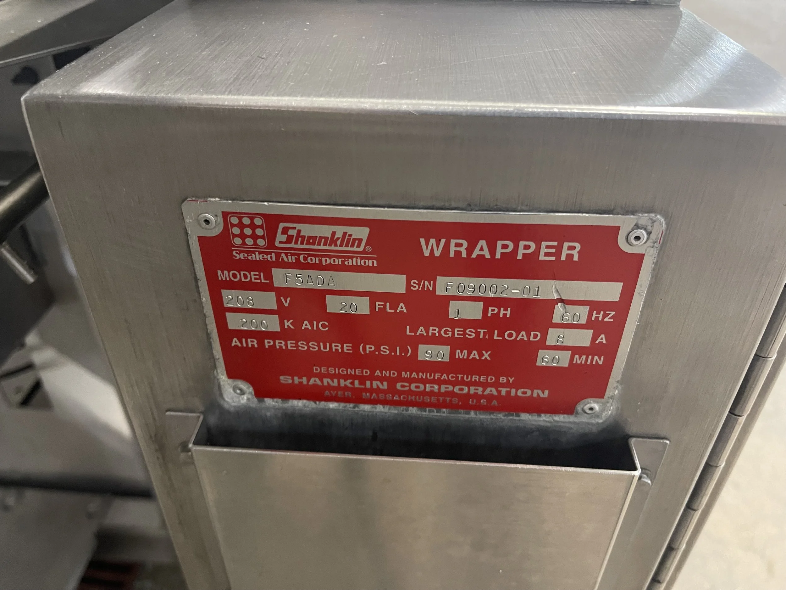 The Shanklin F5ADA is an automatic inline shrink wrapping machine designed for continuous packaging operations in commercial food production environments. The system utilizes centerfold shrink film to fully enclose products and applies a heat-sealed L-bar closure, creating a sealed enclosure prior to downstream processing. The machine is configured for consistent throughput and repeatable packaging performance across a range of product formats including trays, cartons, and multi-pack applications.